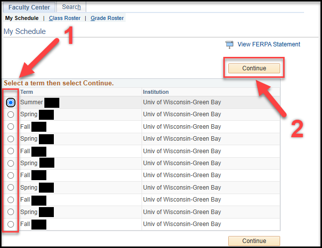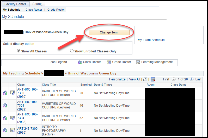 Ensure the correct term is selected. To navigate to a different term, click the Change Term button.