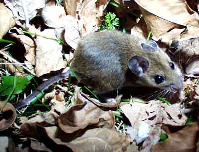 Winter is a great time to go searching for mammals because the blanket of snow reveals evidence of their passage. These tracks were left by a White-footed Mouse (Peromyscus leucopus). If you look more closely, you might find discarded black cherry pits, caches of stored food, or burrows under tree roots also left by this species. Although mammals are very secretive, it is possible to discover which mammals are present in an area. If you have a good eye for details and have enough patience, you will soon find what you are looking for. Look closely at the tracks, making notes on the details. Some key characteristics that help in identification of mammal tracks include the number of toes on the front and hind print, the length of each print, the distance between paces or leaps, the pattern of the prints on the ground, and the presence or absence of tail mark or claw marks. There are many field guides for identifying mammals from there tracks, both in snow and in mud. |