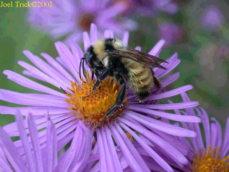 sp.) gathering nectar from purple aster (Aster novae-angliae).