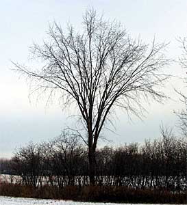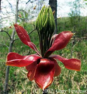 Winter can be long in Wisconsin (even if not particularly cold this year) and many of the traditional summer outdoor recreations get put aside. The above photos are intended to show that there are still opportunities for "winter botany". Many of our native trees and shrubs can be accurately identified in winter with a little practice. The color, shape and size of buds, the number of "bud scales" and other characters are helpful. The four species shown above are Yellow-bud Hickory (Carya cordiformis) upper left, Shagbark Hickory (Cary ovata) upper right, Ironwood (Ostrya virginiana) lower left, and Hawthorn (Crataegus mollis) Lower right. There are also clues to identifying each species in the bark of the trunks or twigs, in the leaf scars left behind when the leaves fall off, or even the growth form of certain species. The buds of trees contain all that is necessary for the next year's growth. In the spring, the bud scales covering the buds will fold back as the growing tissue inside expands. The twig will grow longer and produce new leaves and possibly flowers, from tiny structures already present in the buds. Here is an example of an opening bud of Shagbark Hickory (Carya ovata), shown above on the upper right. After the summer's growth is finished the twigs will form new buds for the next winter, with the next year's leaves already formed, but very tiny.