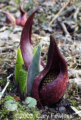 The Titan arum (Amorphophallus titanum ) at the University of Wisconsin Madison is very close to blooming in a world record fashion! This massive plant can reach over 8 feet in height and grows over several years from an equally massive tuber of over 150 lbs. Titan arum is in the Family Araceae, and like its relatives the calla lilies and "Jack in the pulpit" its flower is a single stalk or spadix studded with tiny flowers that is surrounded by a showy bract called a spathe. The Titan arum is often called the "corpse flower" because it smells very much like decaying flesh ("rotting-fish-with-burnt-sugar") and the the spathe that surrounds the flowers is a dark red "meaty" color. Although not attractive to daytime pollinators like bees, butterflies, or birds, this combination attracts beetles and flesh flies who are fooled into thinking it is a meal. The beetles and flies crawl through the plant transferring pollen and fertilizing the female flowers which will grow into red berries.You can visit this spectacular plant fstaring Monday, June 6, when the greenhouse hours will be 9 a.m. to 9 p.m. On the day the plant blooms, the greenhouse will stay open until midnight. For more information and daly updates visit their website. Even if you can't make it down to Madison to see this large flower, you can still observe our own unique "carrion arum" every spring in the Great Lakes states. Skunk cabbage (Symplocarpus foetidus), although far more diminutive than the Titan arum is also in the Araceae family and uses a similar combination of foetid scent and dark red coloring to attract pollinators. And while the Titan arum is impressive for its rapid growth and immense size, the skunk cabbage has some impressive characteristics of its own. Skunk cabbage blooms in the very early spring and produces its own heat (thermogenesis) by metabolizing salicylic acid and salicylates. It can maintain temperatures above 15°C when the air temperature drops to –15°C, actually melting the snow around it. The temperature inside the spathe can be 21°C for the blooming period. It doesn't seem to affect the plant directly in terms of growth, in fact the plant has to burn more energy than a small mammal in order to warm itself. Instead the warmth and the carrion smell of the flowers attracts early flies. The shape of the spathe enhances its attracting abilities by drawing cold air in the wide opening toward the bottom of the spathe, which warms and rises out the narrow opening at the top. This draws insects in at the bottom and releases insect-attracting odor out the top. The Titan arum lives about 40 years flowering several times over that period. Eastern skunk cabbages have been idetified that are several hundred years old and it has been hypothesized that they may be capable of surviing for thousands of years. As a plant grows the roots extend into the wet soil and then coil or contract, anchoring the plant in place and keeping it at the right depth in the wet soil. Root masses on old plants are massive. As long as they have a favorable marshy habitat and are free from predation or disease they are nearly permanent. Related Articles